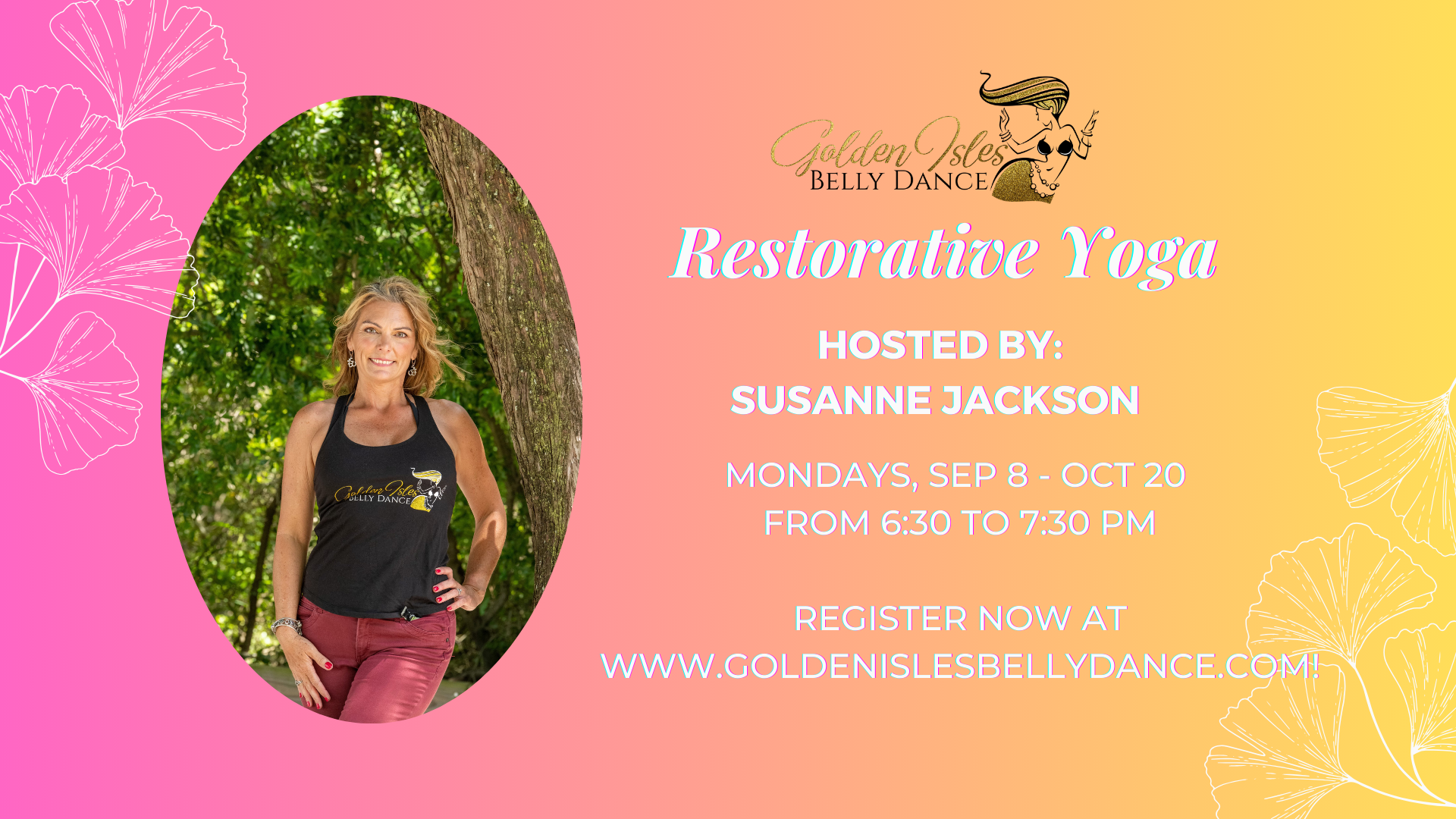 Golden Isles Belly Dance is growing, and we are so excited to add Mellow Mondays – Restorative Yoga class with Susanne!