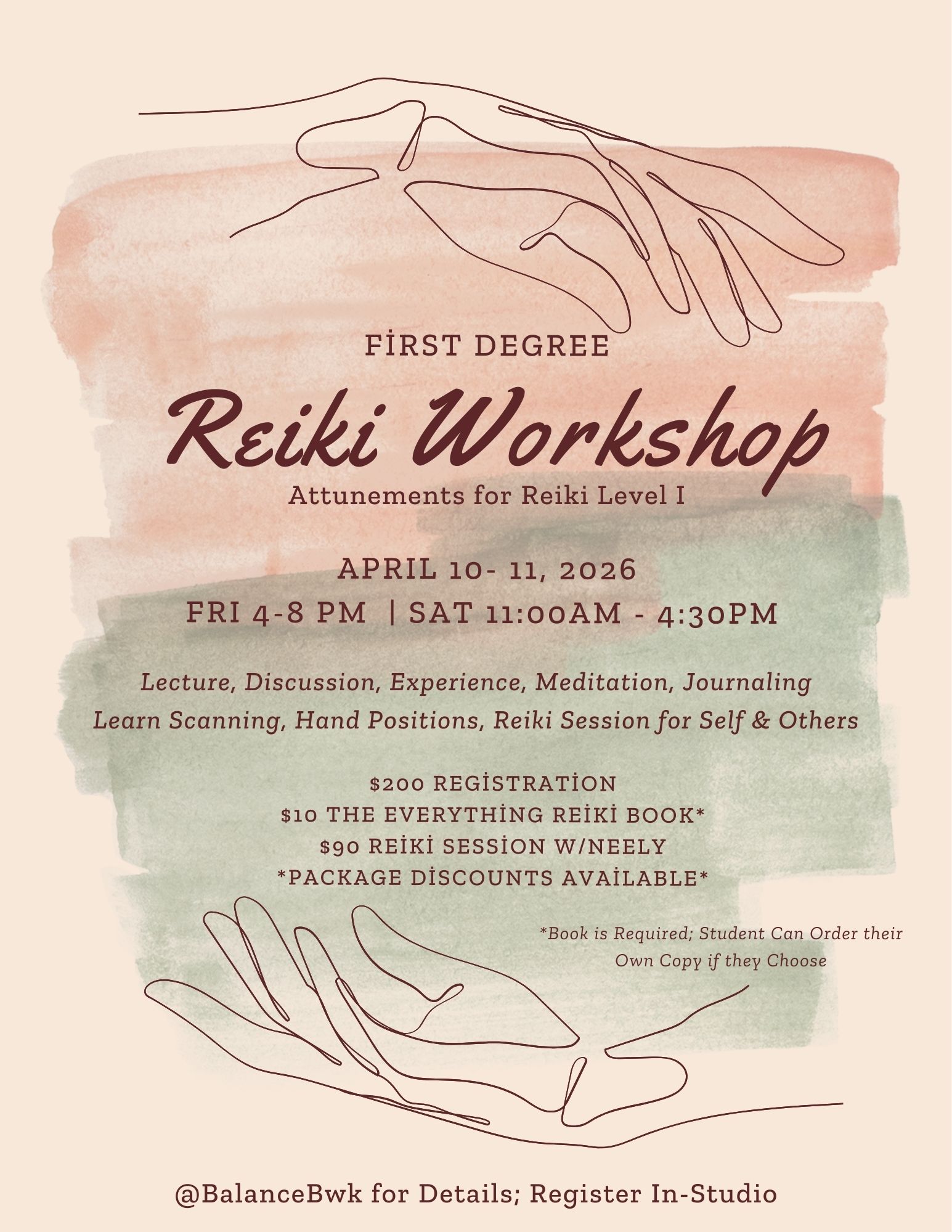 Balance Wellness Studio 1312 Newcastle St, Brunswick, United StatesThe Reiki I Workshop is the first level of Reiki training - the focus is on self-Reiki and of sharing with close loved ones. You'll learn to let Reiki flow and protocol for application to "know it's working" including scanning, standard hand positions, a complete session for self & others, and running energy. Each day […]